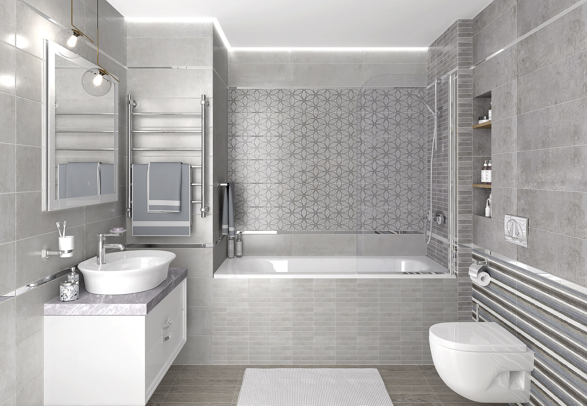 Крафт Плитка настенная полоски серый 17-01-06-2482 20х60