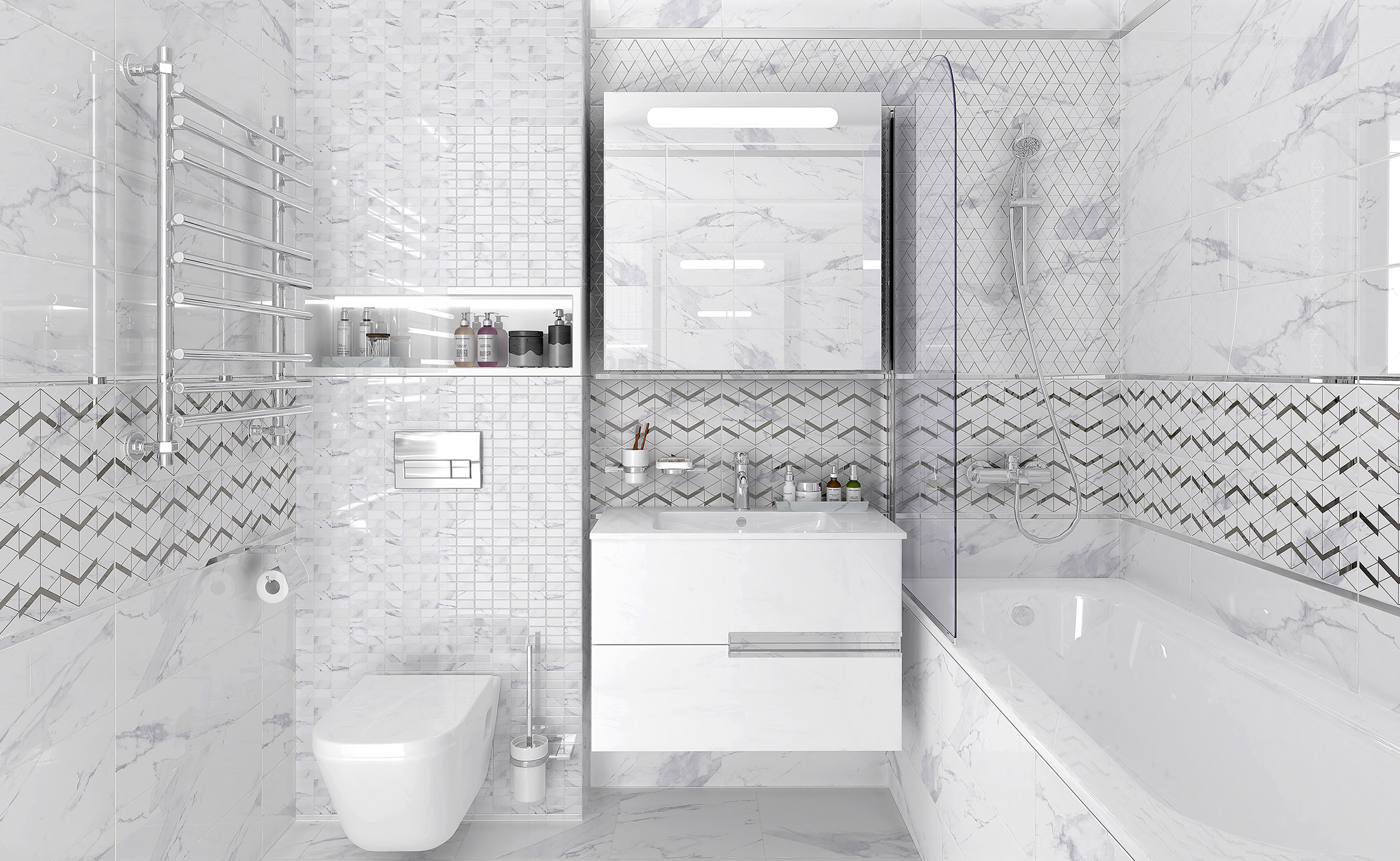 Лорд Декор мозаичный белый ММ60126 20х60 глянцевый